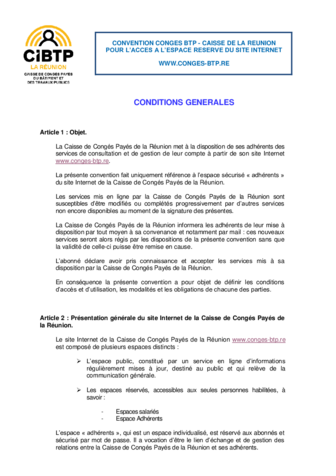 Convention pour l'accès à l'espace réservé du site internet de la caisse congés BTP Ile de La Réunion
