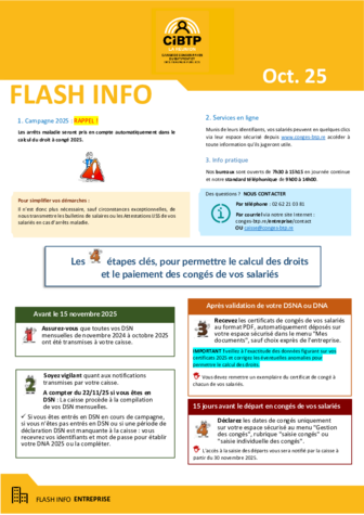 Newsletter de la Caisse Congés BTP Ile de La Réunion
